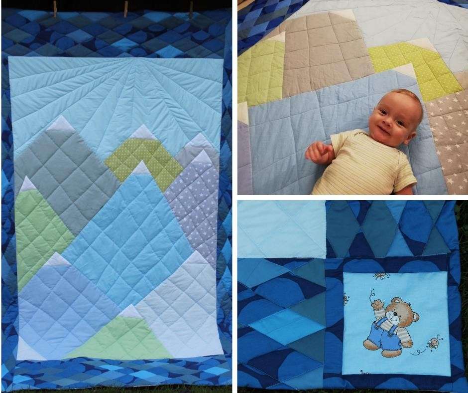 Eile aga saatis Klaudi mõned toredad pildid, mida oli nõus ka kõigiga teiega jagama. Tema Väike Karu sai omale jõulukingiks lapiteki, kuhu on kokku põimitud tema pere lugu. Lisaks "karupojale" endale on siin kujutatud Eestist pärit emale armas meri ning isa poolt kaasa tulnud Torino Alpide mäed. Tekk on tehtud ühe inimese standardsuuruses ehk 150x200 cm, nii saab seda kasutada palju-palju aastaid- algul mängutekina, hiljem voodikattena. Hea ja praktiline mõõtude valik, sest siin kujutatud motiivid-ema ja isa päritolu- on ka elus jäävad. Ja see lõbus Karu all paremas nurgas jääb kenaks mälestuseks lapsepõlvest.