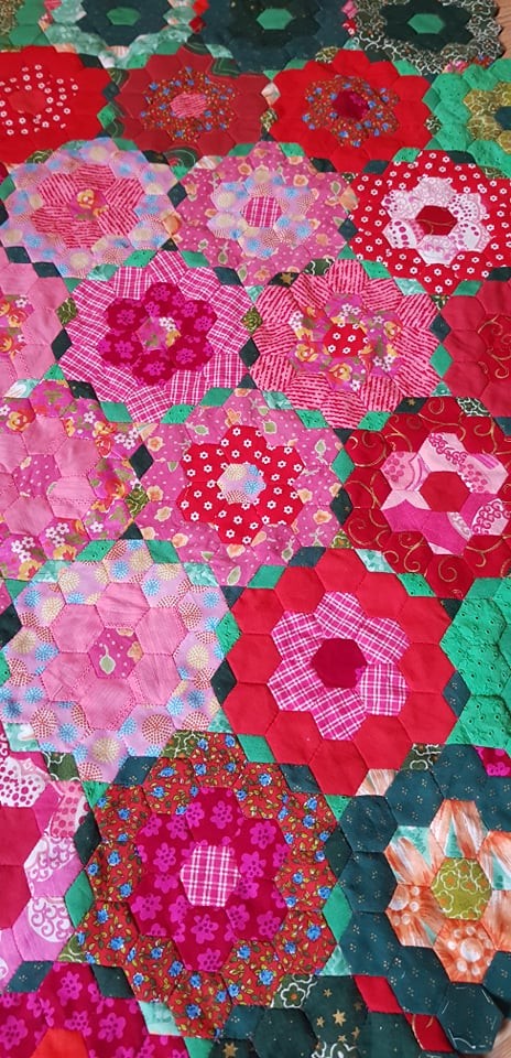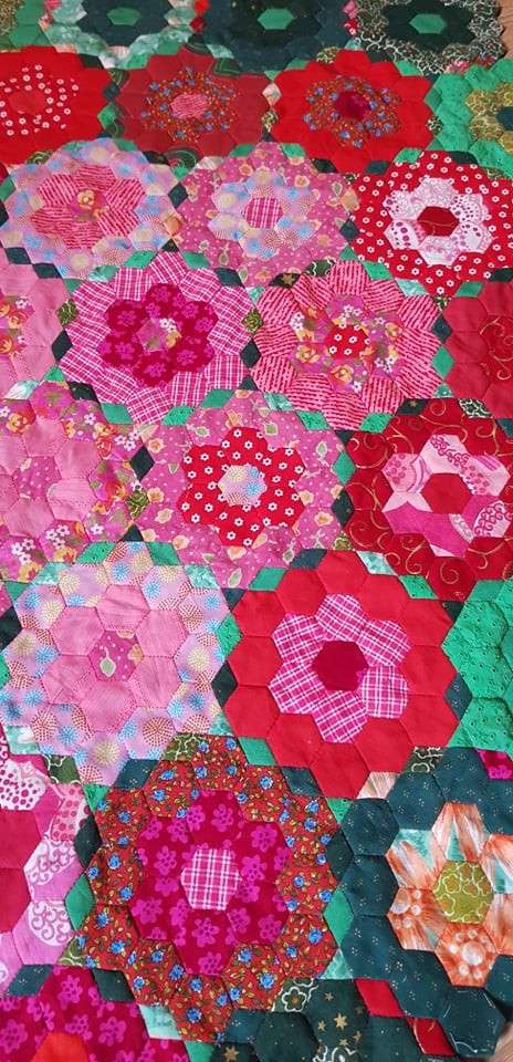 Muude tegemiste kõrvalt meeldib mulle tõesti väga ka käsitsi lapitööd teha- näiteks õhtul hilja, kui lapsed juba magavad ja majas tuleb vaikust pidada. Seda tehnikat nimetatakse Inglise pabertehnikaks- kangas traageldatakse paberile, tükid õmmeldakse kokku ja siis võetakse traagelniit koos paberiga tagant ära. Kiiremini saab edasi liimi kasutades, kuid väldin keemia kasutamist ja jätkuvalt teen nn eeltööd nõela-niidiga.